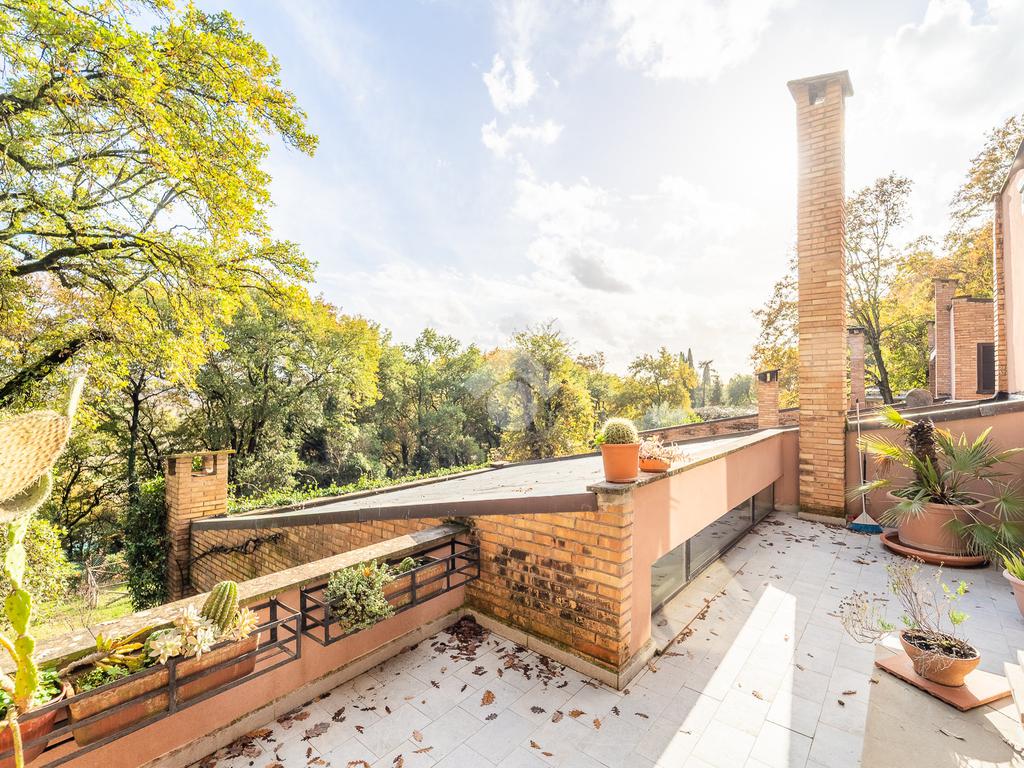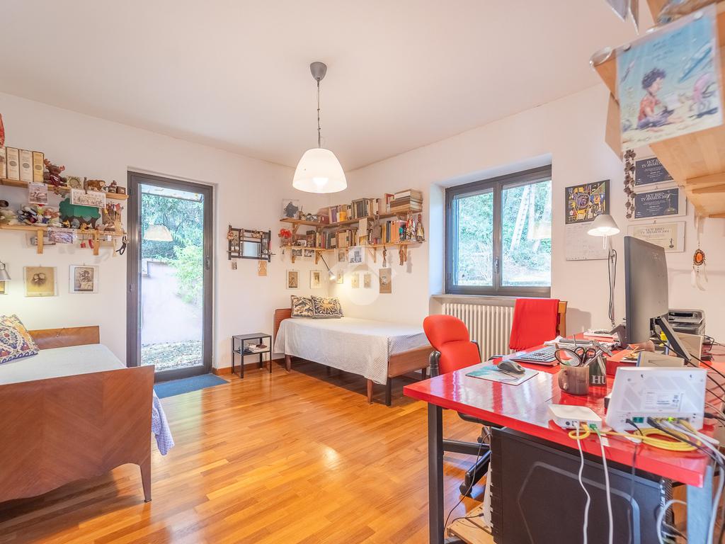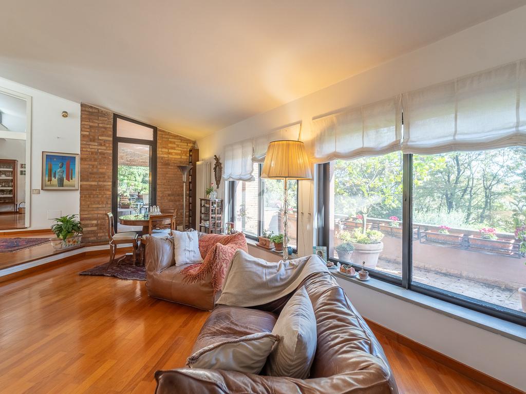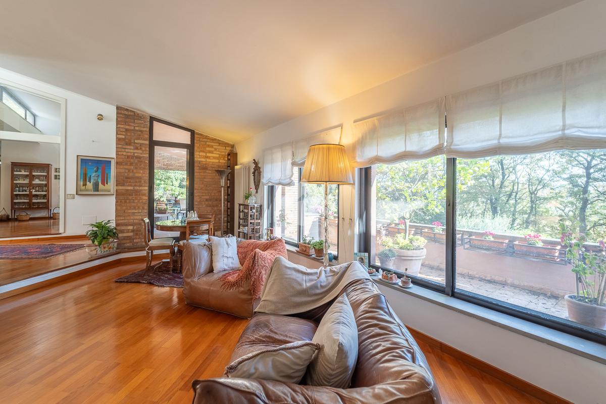 Nel prestigioso comprensorio di Colle Romano, proponiamo in vendita una porzione di villa bifamiliare di 308 mq, sviluppata su tre livelli più mansarda, immersa in un contesto verde e riservato, con giardino privato di 1.200 mq e un bosco di faggi di circa 1 ettaro.
