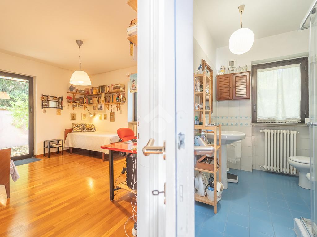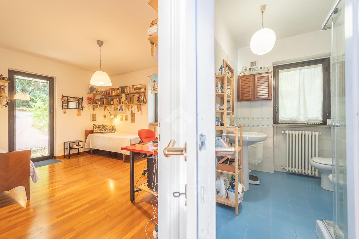 Nel piano sottostante è inoltre presente un bilocale di circa 50 mq, indipendente e con accesso diretto al giardino: una soluzione ideale per ospiti, personale di servizio o per realizzare uno spazio autonomo.