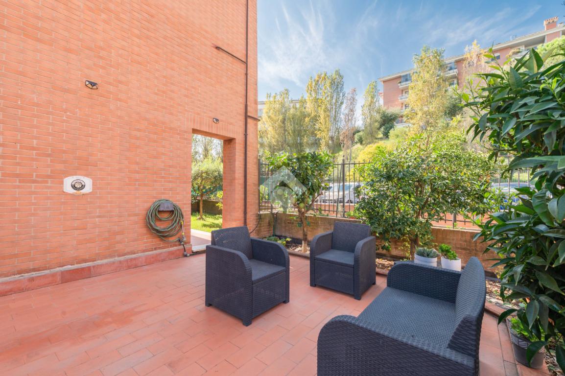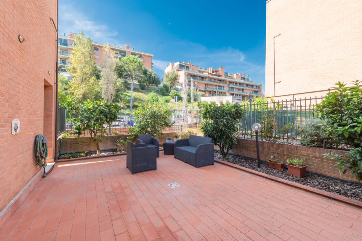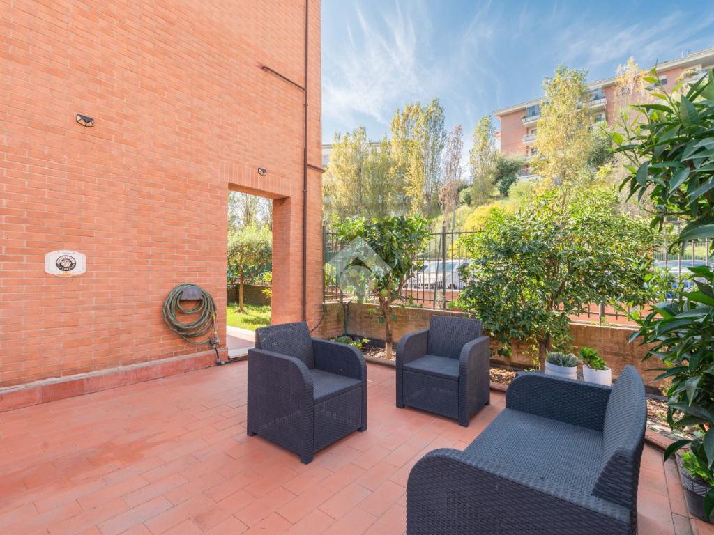 All’esterno si trova un curato giardino privato di circa 90 mq, in gran parte pavimentato, arricchito da piante come ulivo, limone e pesco nano ed è dotato di nuovo impianto di irrigazione e illuminazione potenziata, ideale per momenti di relax all’aperto.