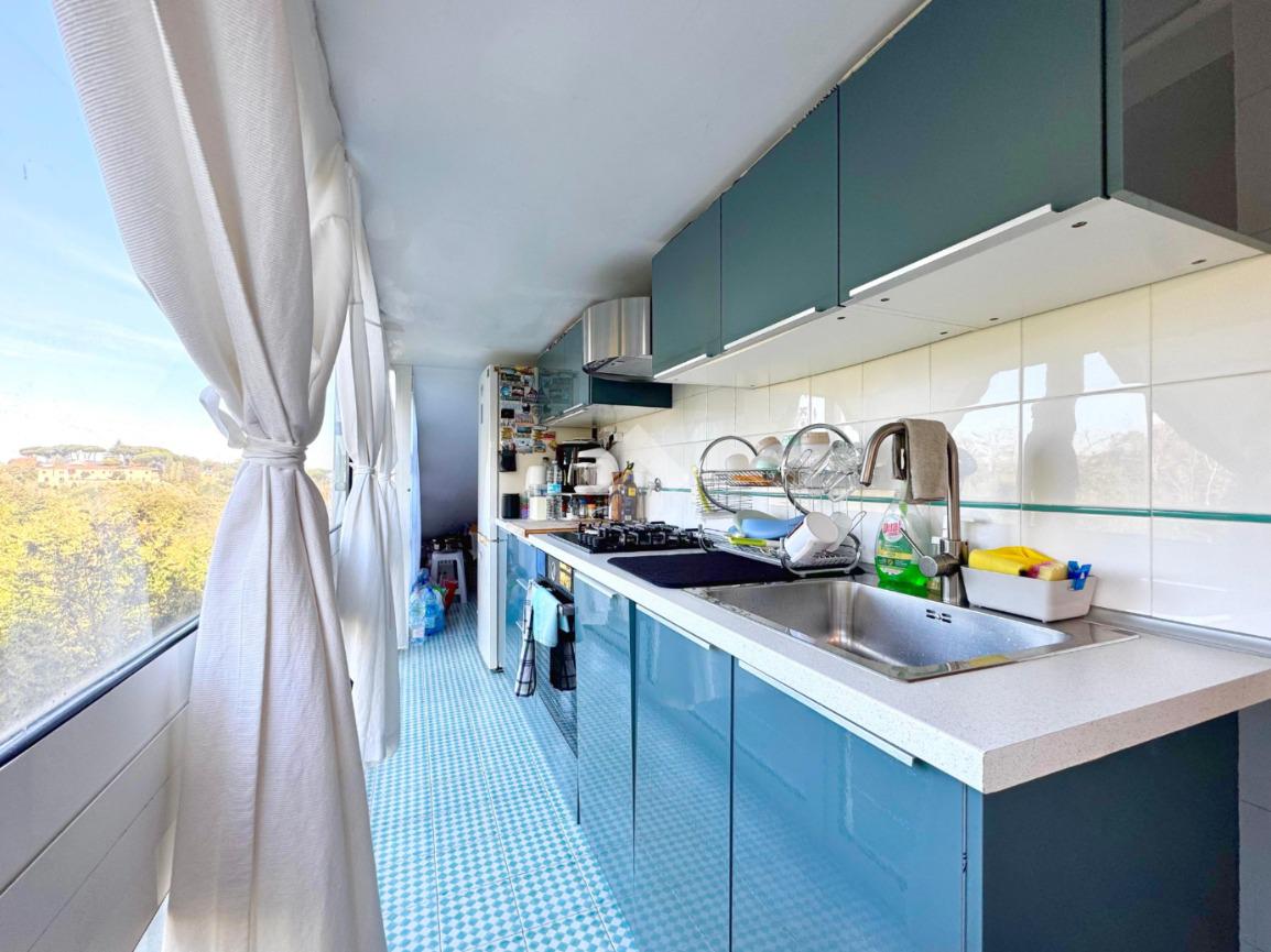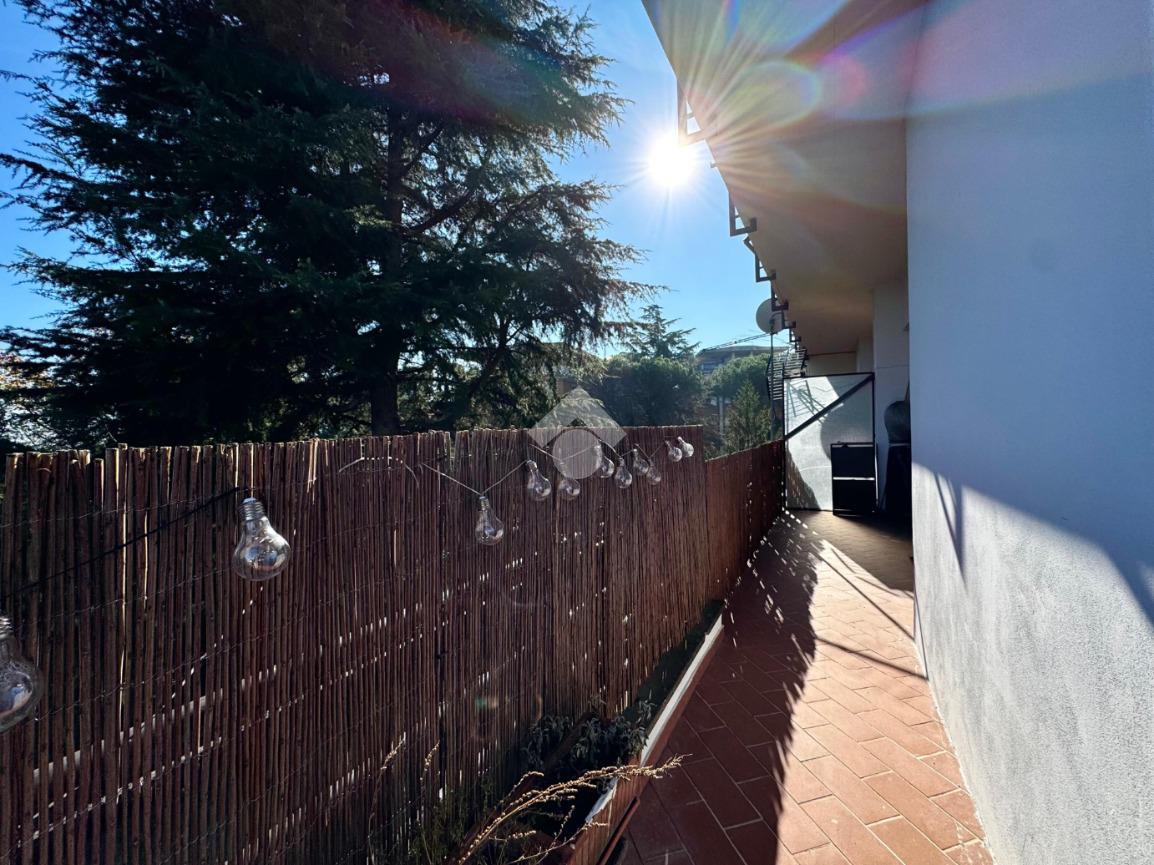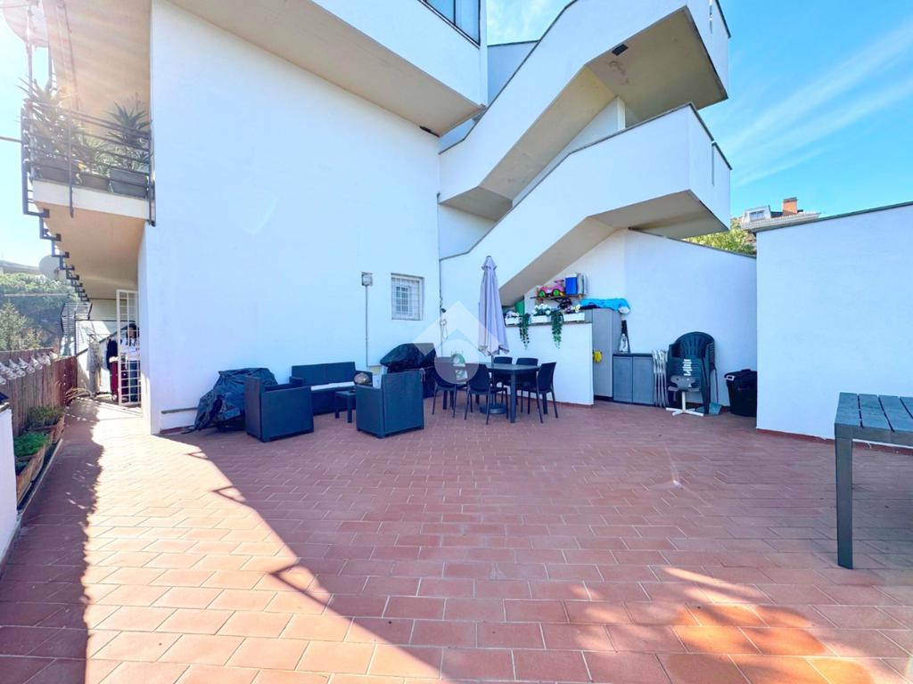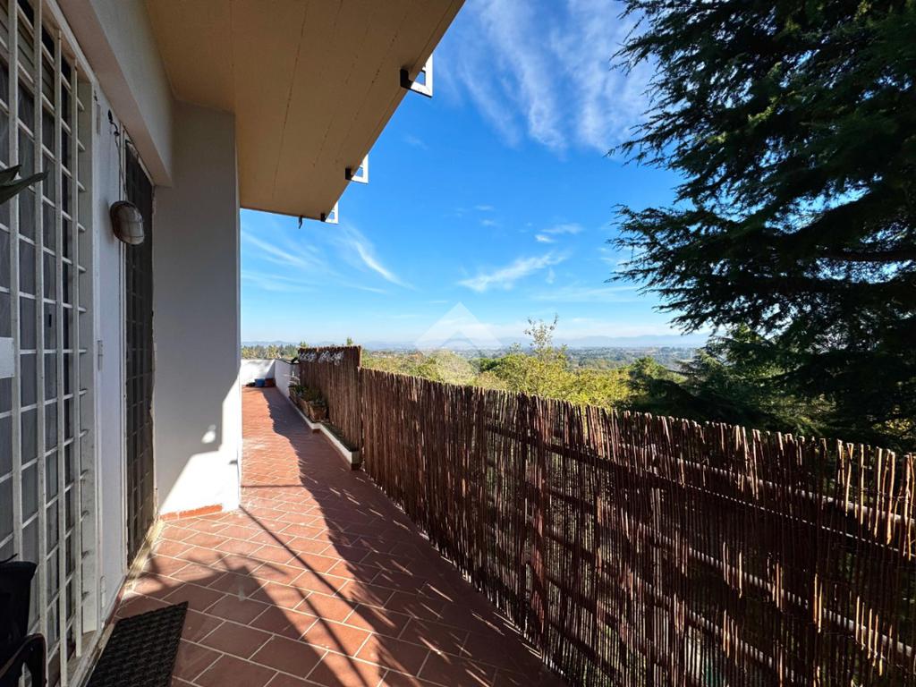 Appena si entra in casa si scendono pochi gradini e si accede al soggiorno luminoso, con uscita diretta su un grande terrazzo panoramico di circa 80 mq, vero punto di forza dell’abitazione: uno spazio esterno riservato, con vista aperta e luminosa, ideale per rilassarsi o ricevere amici.