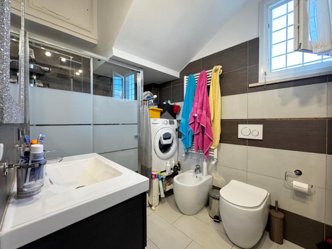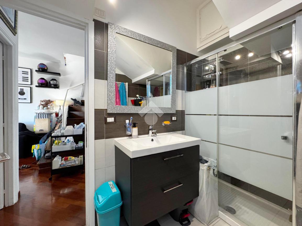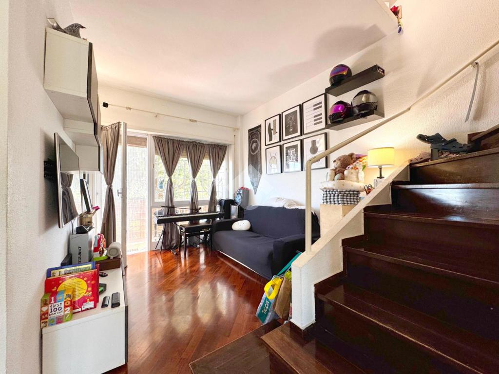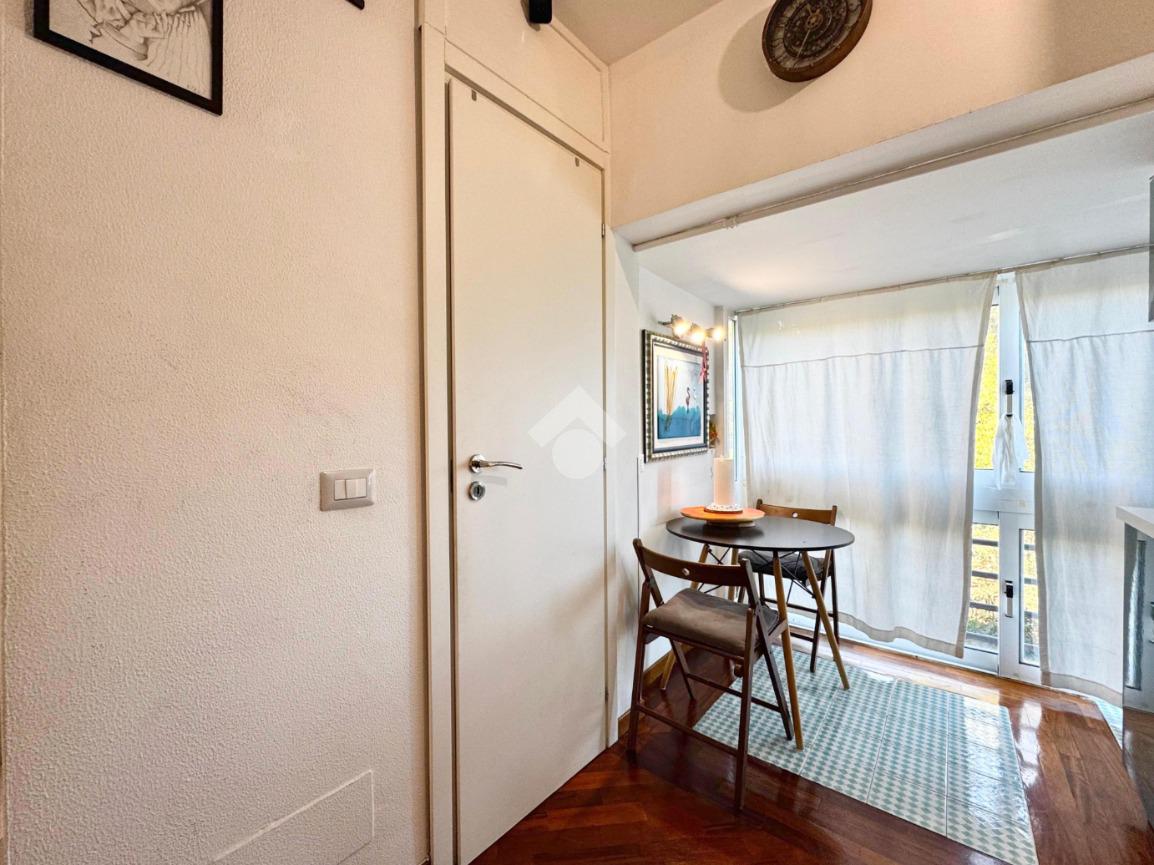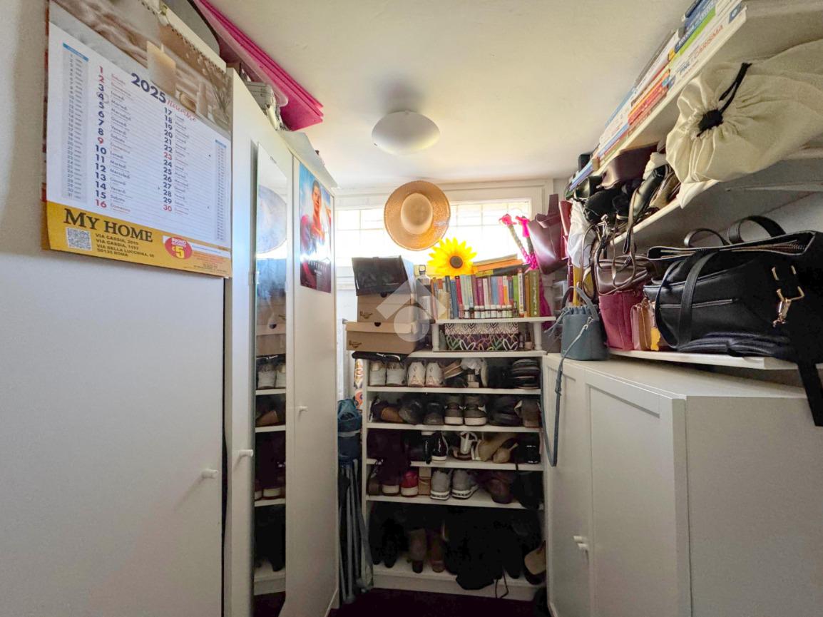 La cucina, chiusa da ampie vetrate, è una ex veranda condonata molto luminosa. La camera matrimoniale dispone di un armadio a muro, mentre la piccola cameretta/studio è dotata di soppalco utilizzabile come ripostiglio. Soggiorno e camera affacciano entrambi sul terrazzo.