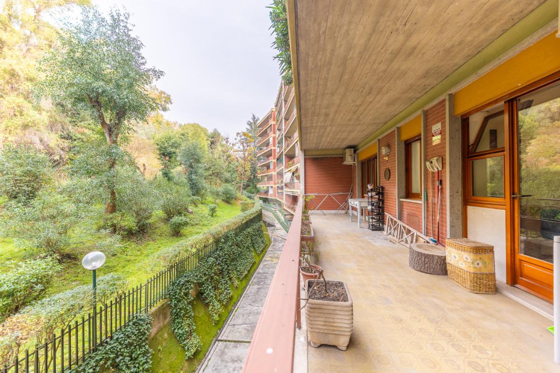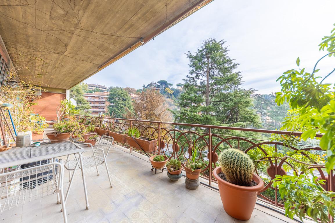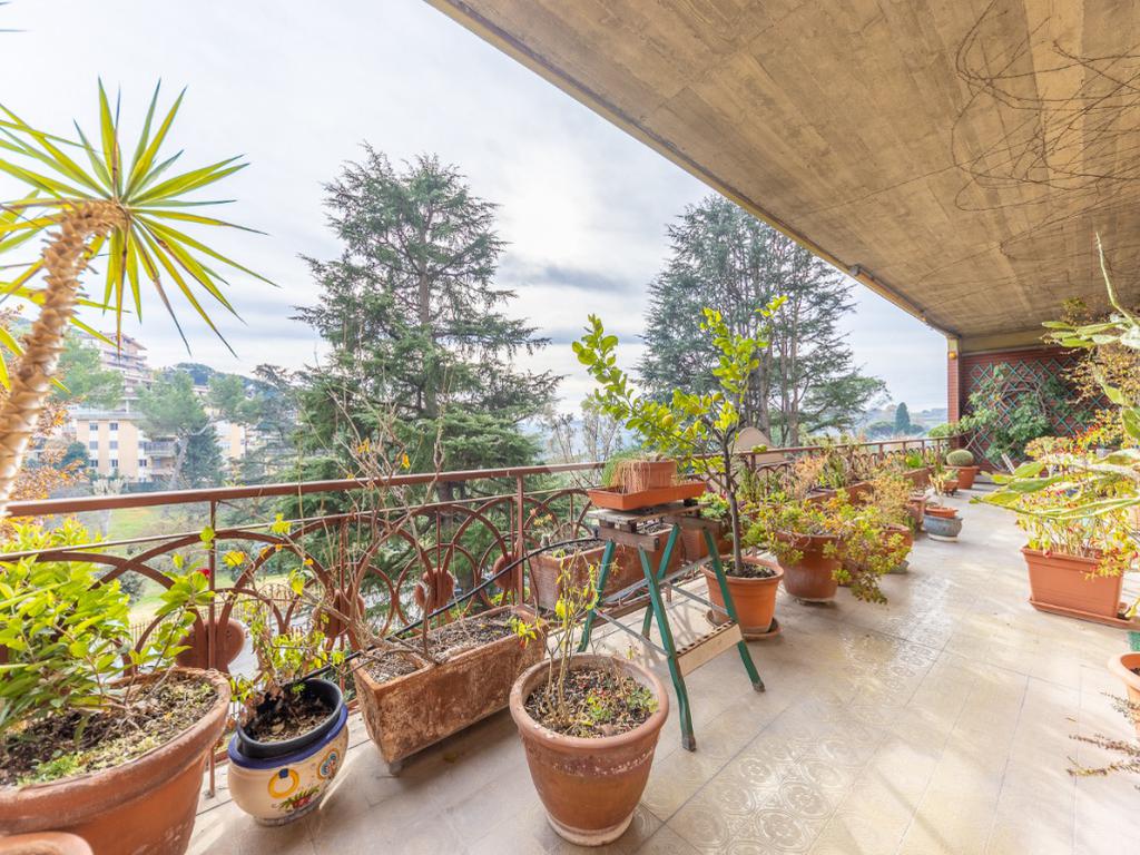 Tutti gli ambienti della casa hanno accesso diretto ai due ampi terrazzi, entrambi di circa 40 mq: il terrazzo a servizio del salone gode di una piacevole vista aperta, mentre il secondo affaccia sul verde, garantendo privacy e tranquillità.