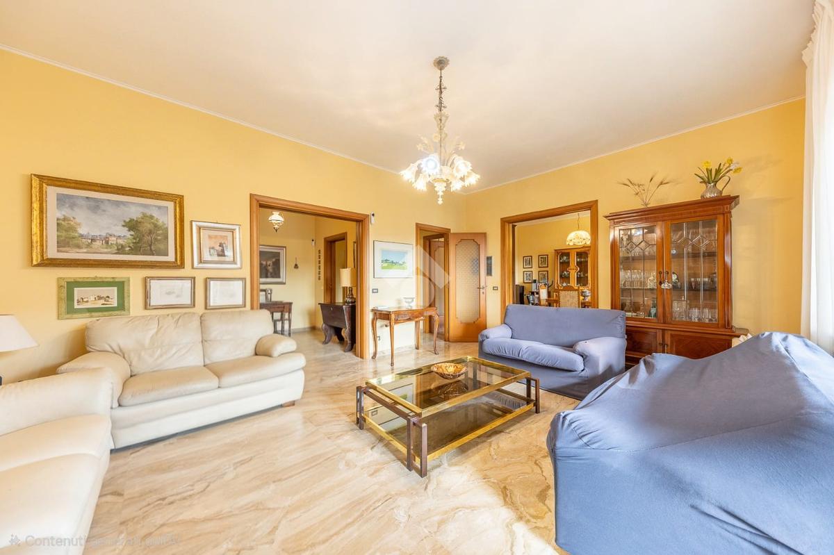 In contesto riservato e silenzioso, all’interno di strada privata chiusa con sbarra e servizio di portineria, a pochi passi da Via Cassia, proponiamo in vendita un ampio appartamento di circa 200 mq, posto al secondo piano.