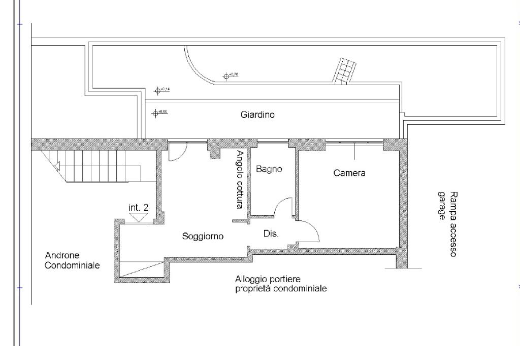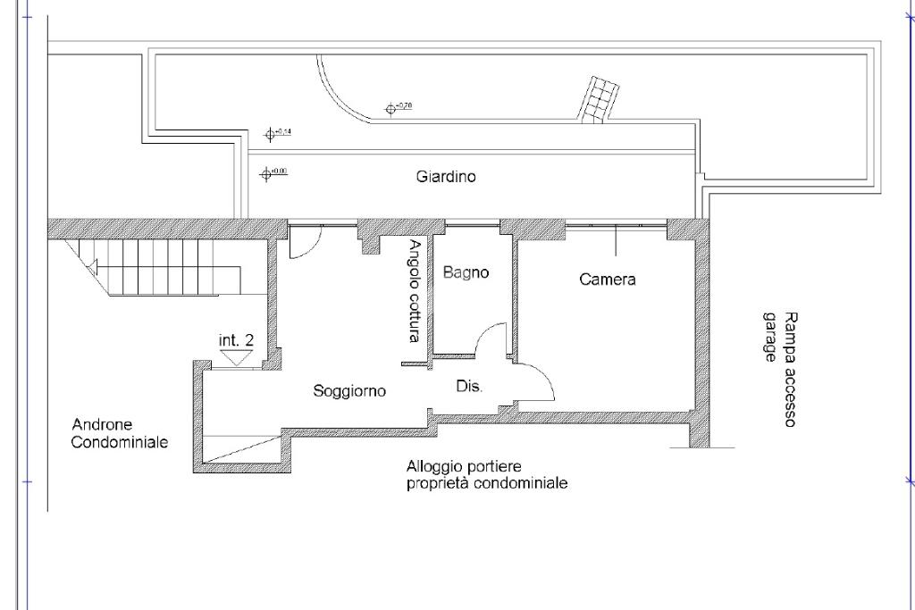 L'immobile, situato al piano terra, ha una superficie di circa 45 mq. L'ingresso si apre su un piccolo disimpegno dotato di ampio armadio a muro. Proseguendo sulla sinistra si sviluppa la zona giorno, composta da un soggiorno con angolo cottura e accesso diretto al giardino privato di circa 45 mq, in parte mattonato, perfetto per momenti di relax all'aperto.