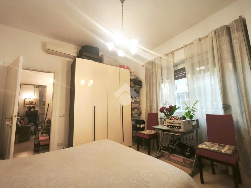 Un comodo disimpegno conduce alla zona notte, dove troviamo una camera da letto matrimoniale e un bagno con doccia e finestra.
