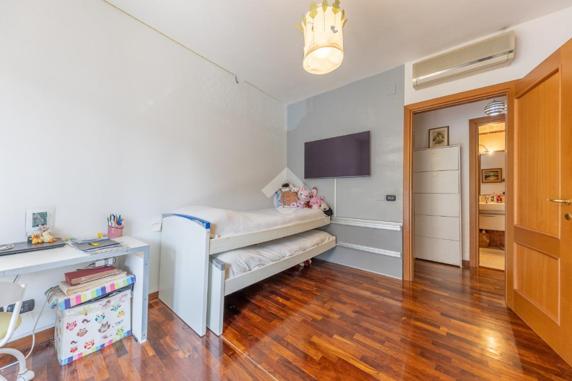 Un disimpegno introduce alla zona notte, composta da camera matrimoniale con bagno en suite finestrato e doccia, seconda camera da letto e secondo bagno con doccia, non finestrato.